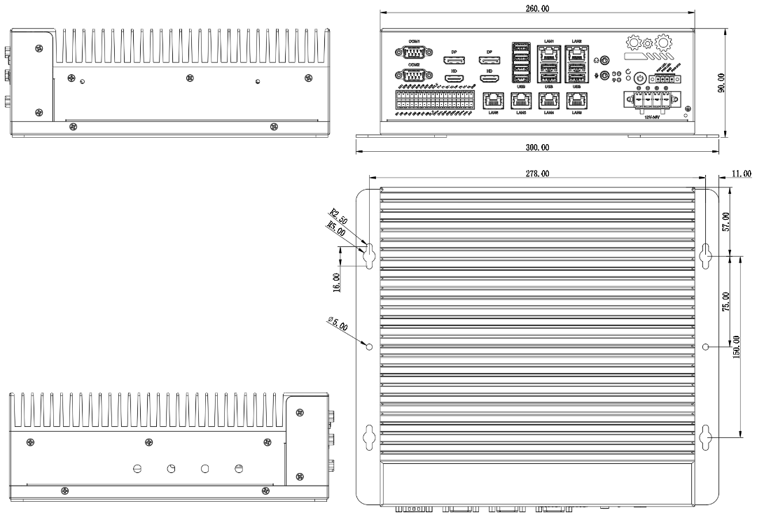 2*HDMI&DP、8*USB3.0、6*LAN(Intel i226-V,LAN3/4/5/6支持POE) |